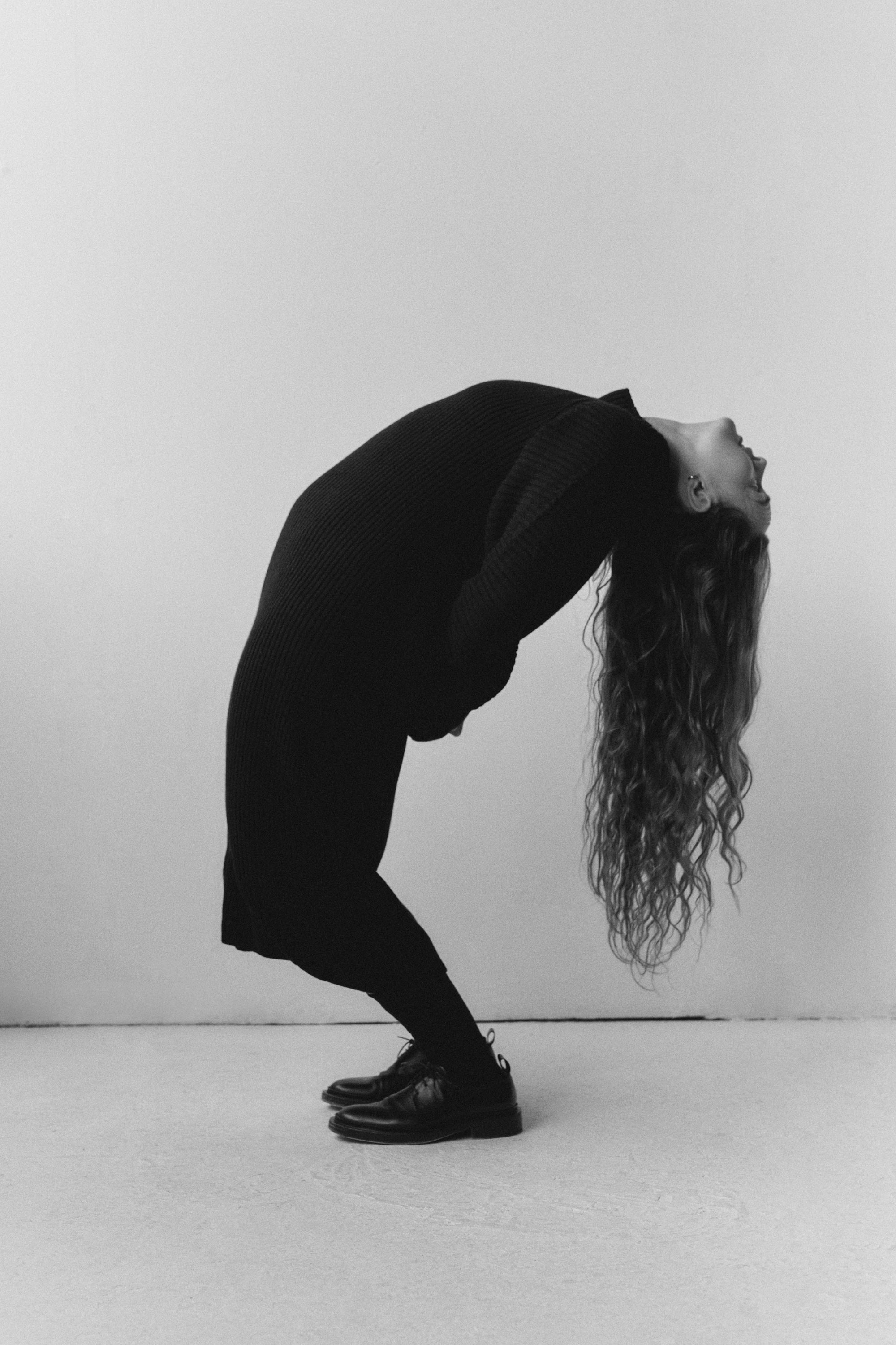 Vertical ribbed dress with grown on funnel neck and raglan sleeves, crafted from lambswool.