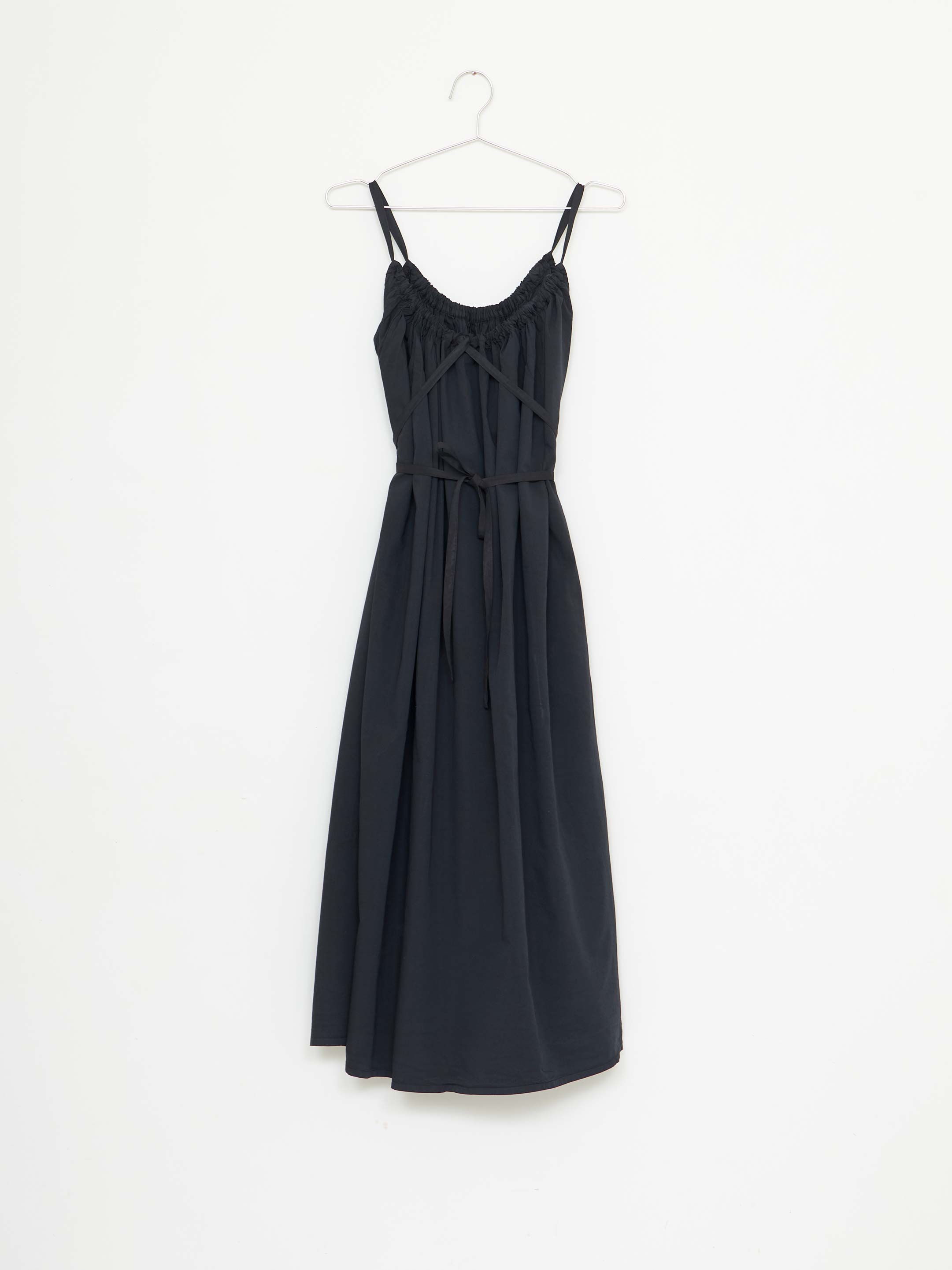 Gathered Tie Dress in Ebony Cotton