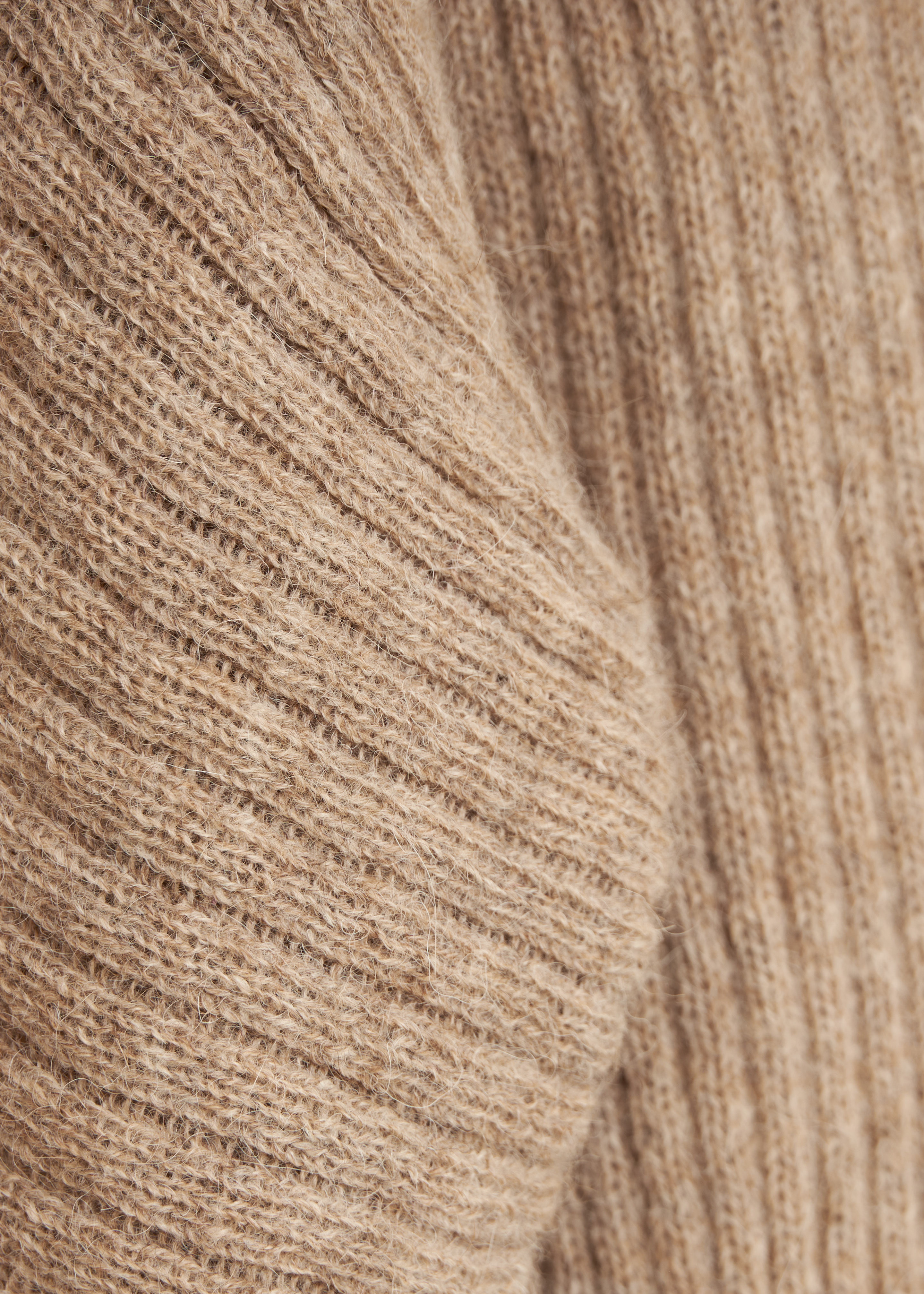 Alpaca wool ribbed jumper featuring grown on vertical rib sleeves and funnel neck.Fabric & Care